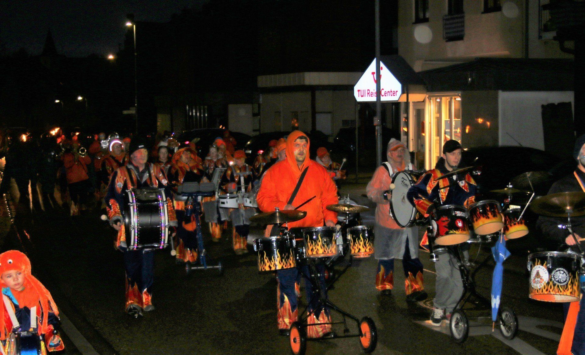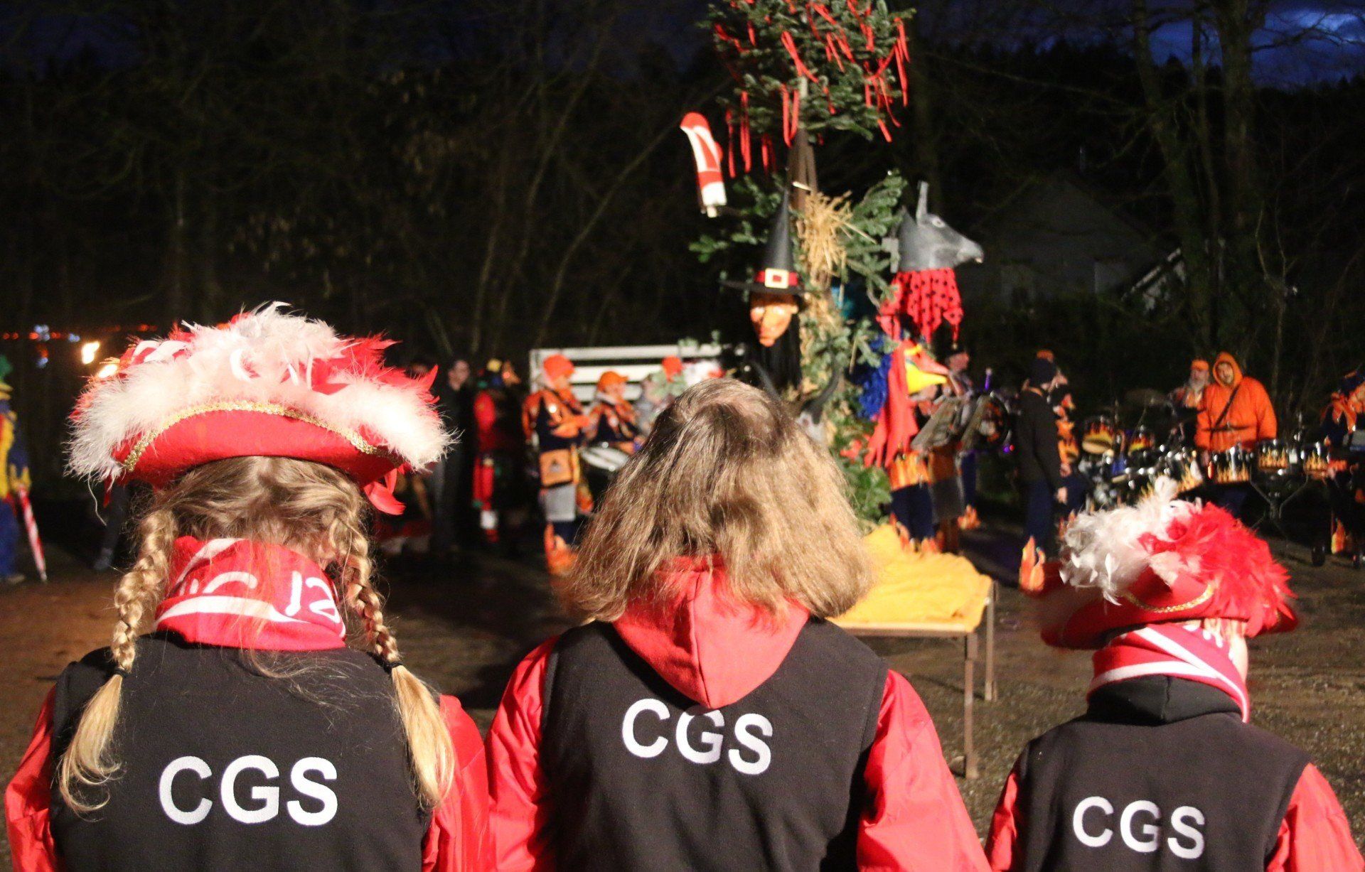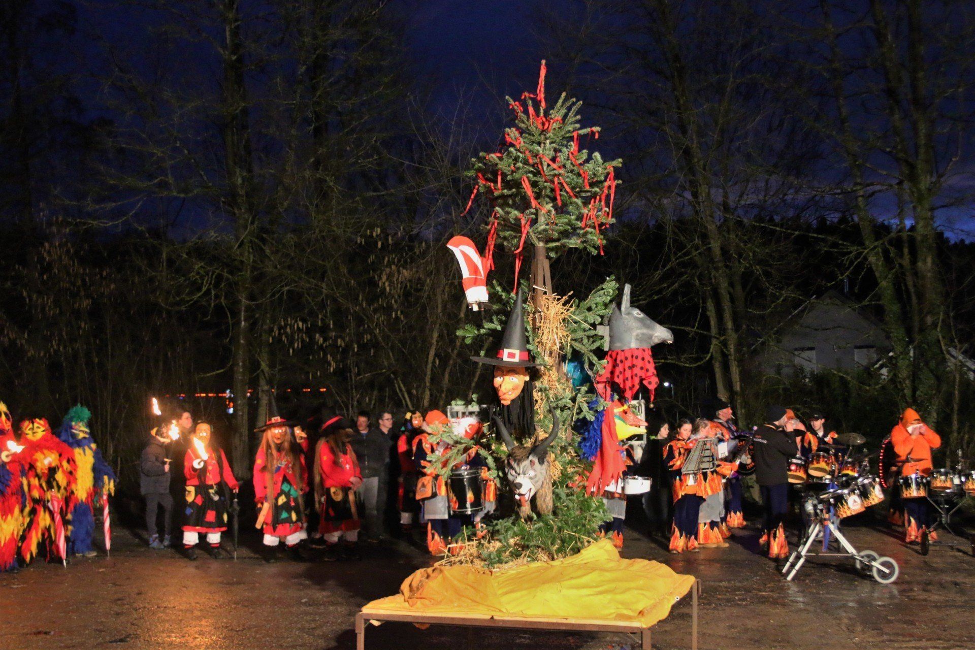 „In der Hall´ oder auf der Gass´: Unsere Besucher und Narren hatten sehr viel Spaß“, blickte die Präsidentin der Carnevalsgesellschaft „Spaßvögel“ Sarah Sebastian am Dienstagabend auf eine heiter-erfolgreiche, friedlich-faire, aber schon wieder viel zu schnell vergangene Kampagne zurück. Nach ihrem kleinen Marsch über die Pfinzstraße kräftig eingeheizt von der Guggenmusik der „Bäääreklopfa“ weinten die Faschingsvereine mit dem leichten Regen um die Wette. Dann entzündeten Vertreter der Spaßvögel, Pfinztrolle, Töpfleshexen, Bäredaifel, Keltereckesel und Tanzgarden mit vereinten Fackeln und einem letzten dreifach donnernden Helau den bald darauf lodernden Narrenbaum mit Masken aller Zünfte.