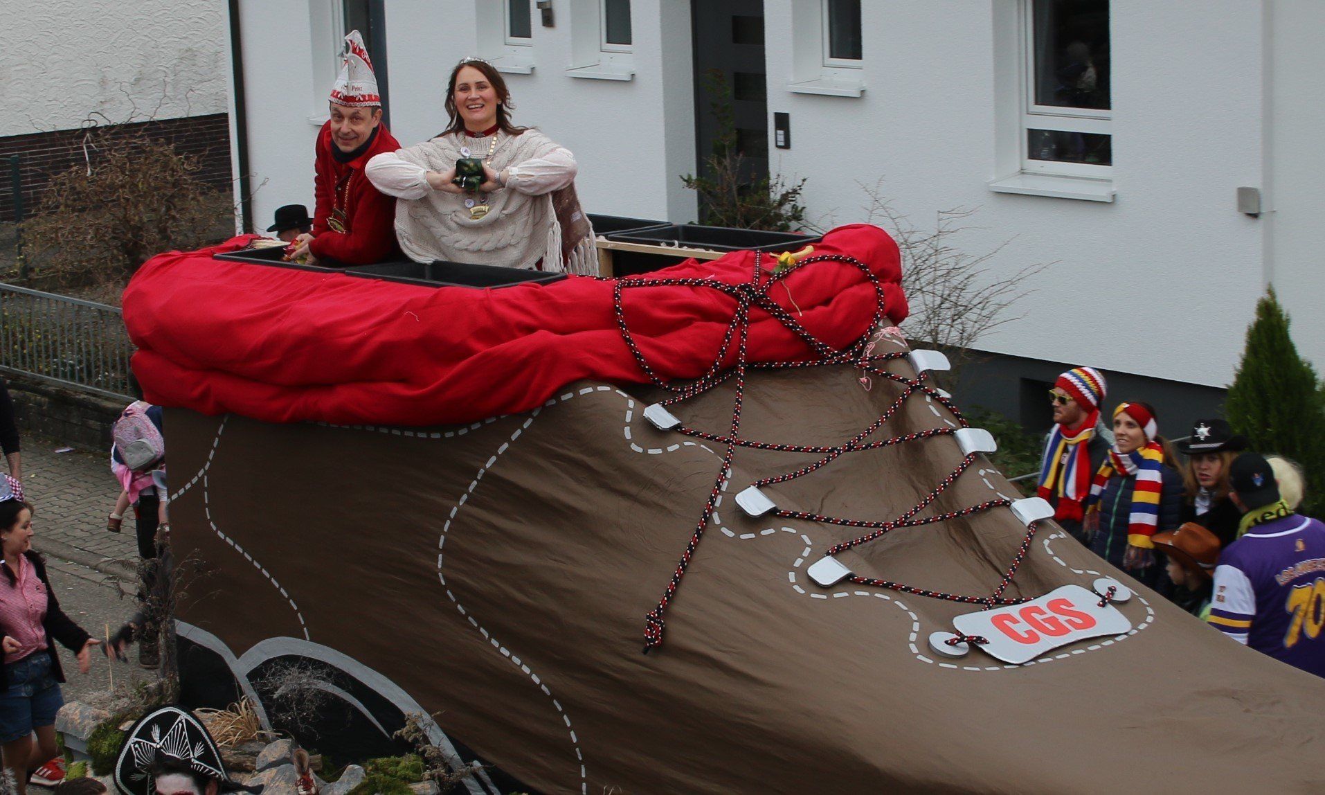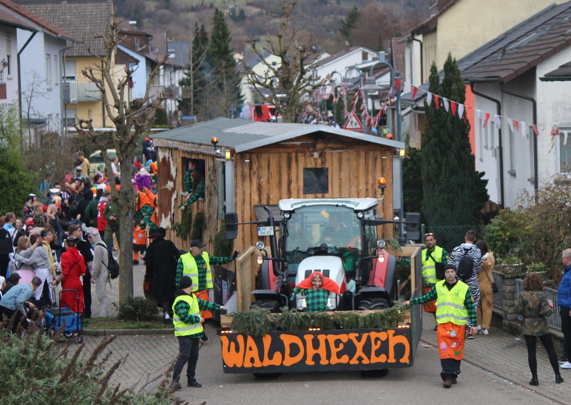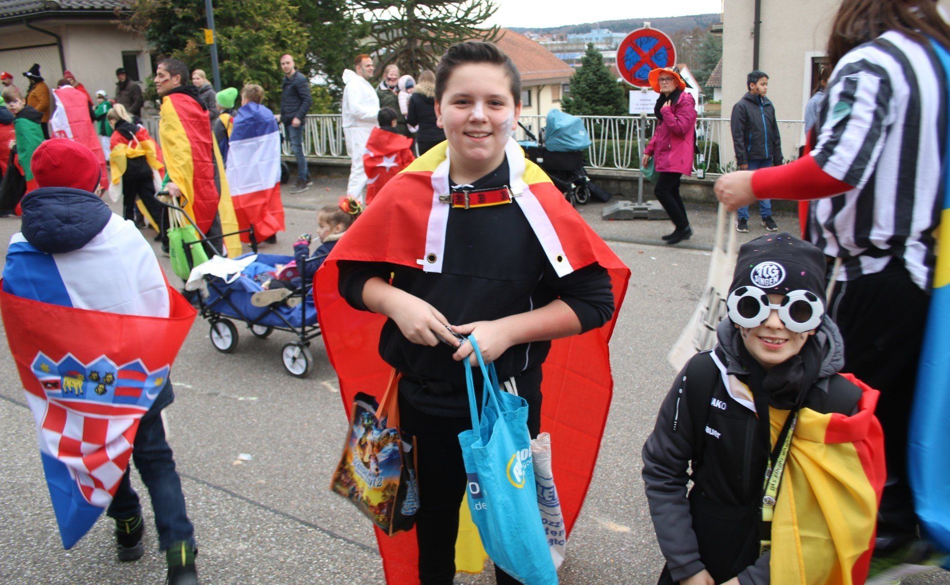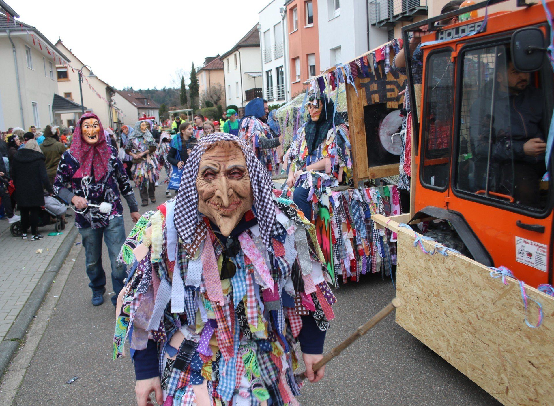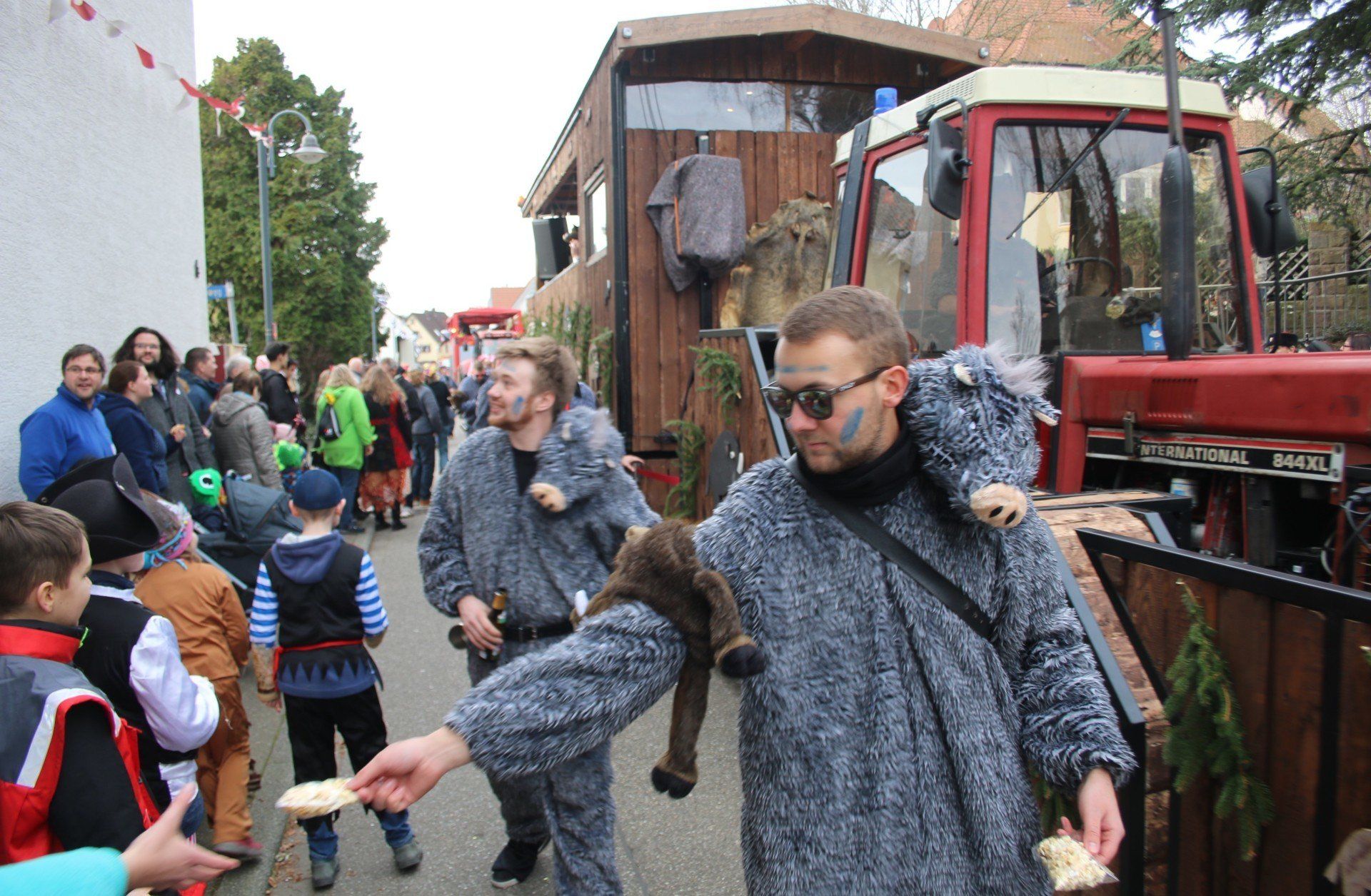 Mittendrin: Kinderprinzenpaar Anneke I. Roser und Phil I. Preiß im silbernen Weltraum-Düsenjet, während sich das Prinzenpaar Alexandra II. Di Sannio und Roman I. Roth im riesengroßen Wanderschuh vor uriger Bergkulisse kutschieren ließ und ebenso jede Menge Gutsele und Geschenke regnen ließ. Ob FCG-Fußballer als Bier(hoff)-Flaschen verkleidet, Gartenzwerge, Narren im Farbeimer und der Mönchkutte, Pfinztrolle, Keltereck-Esel, Singener Bären und natürlich schaurig-fröhliche Hexen, die vor so mancher Haustür kehrten: Der Spaßfaktor bei der ganzen Familie war garantiert in den vollgefüllten Straßen.