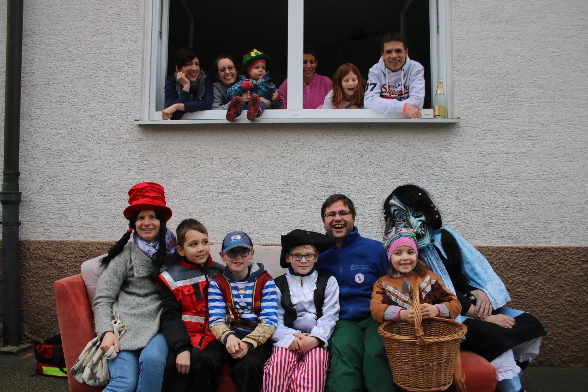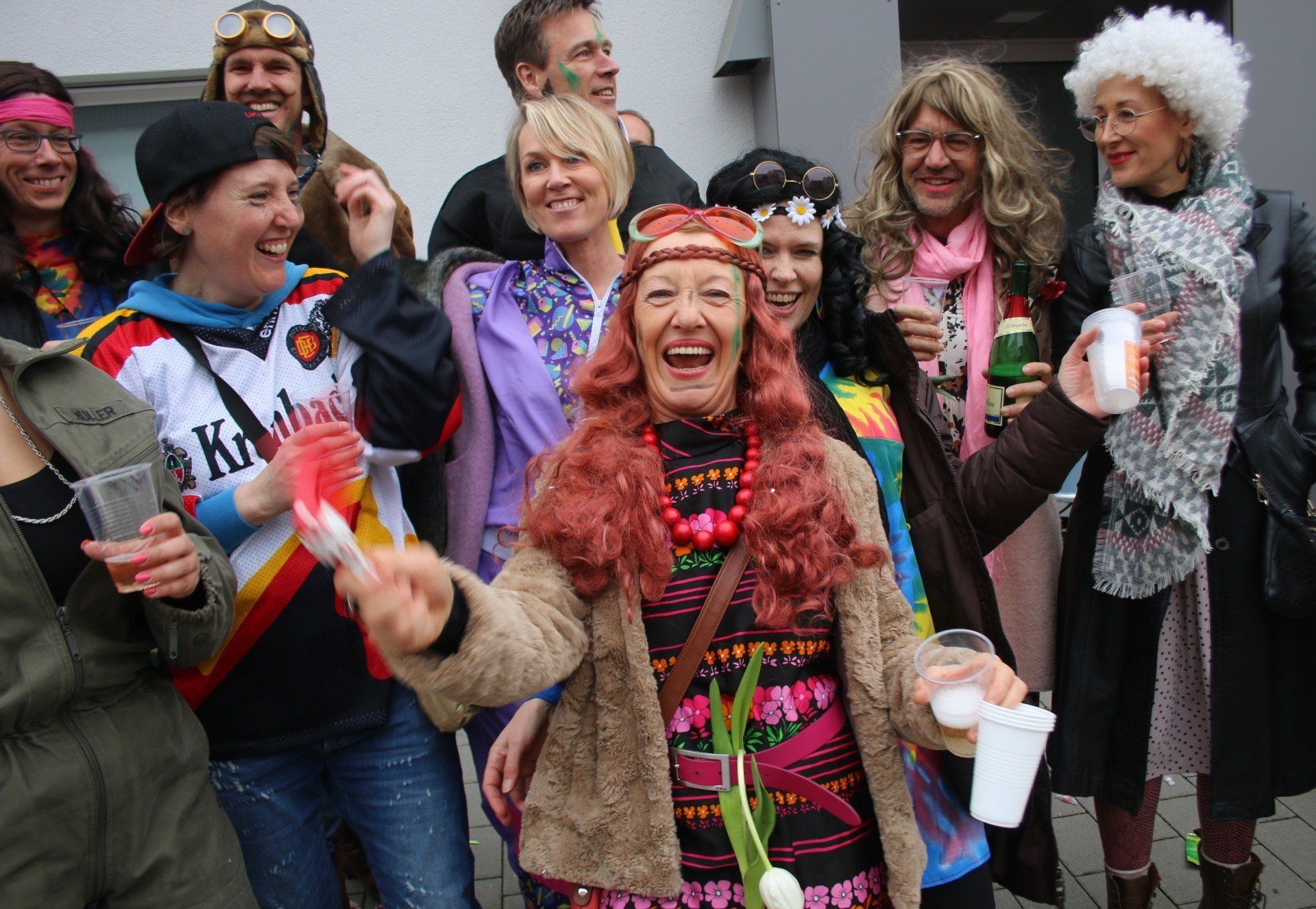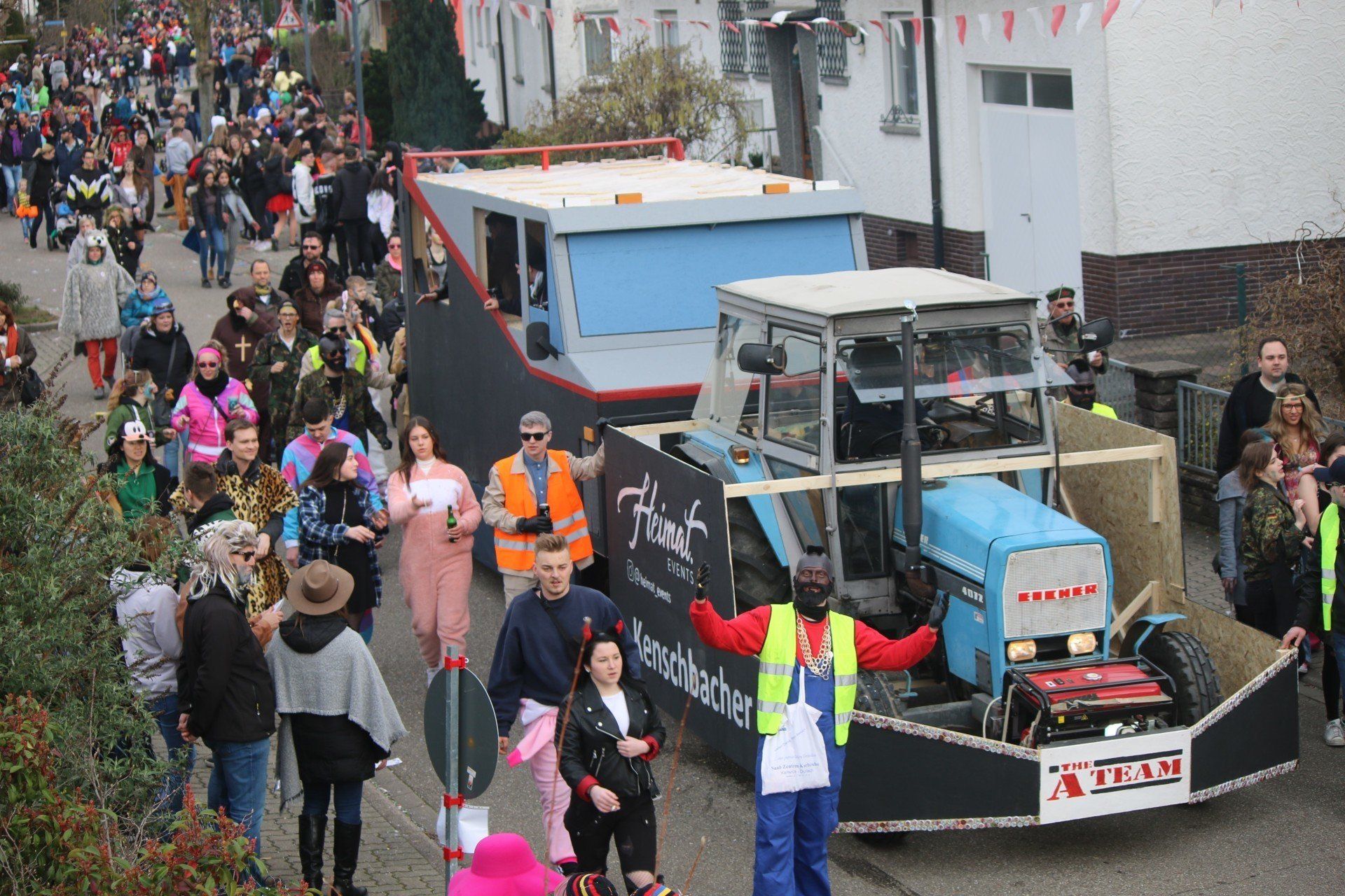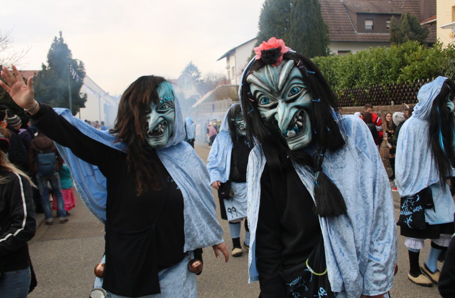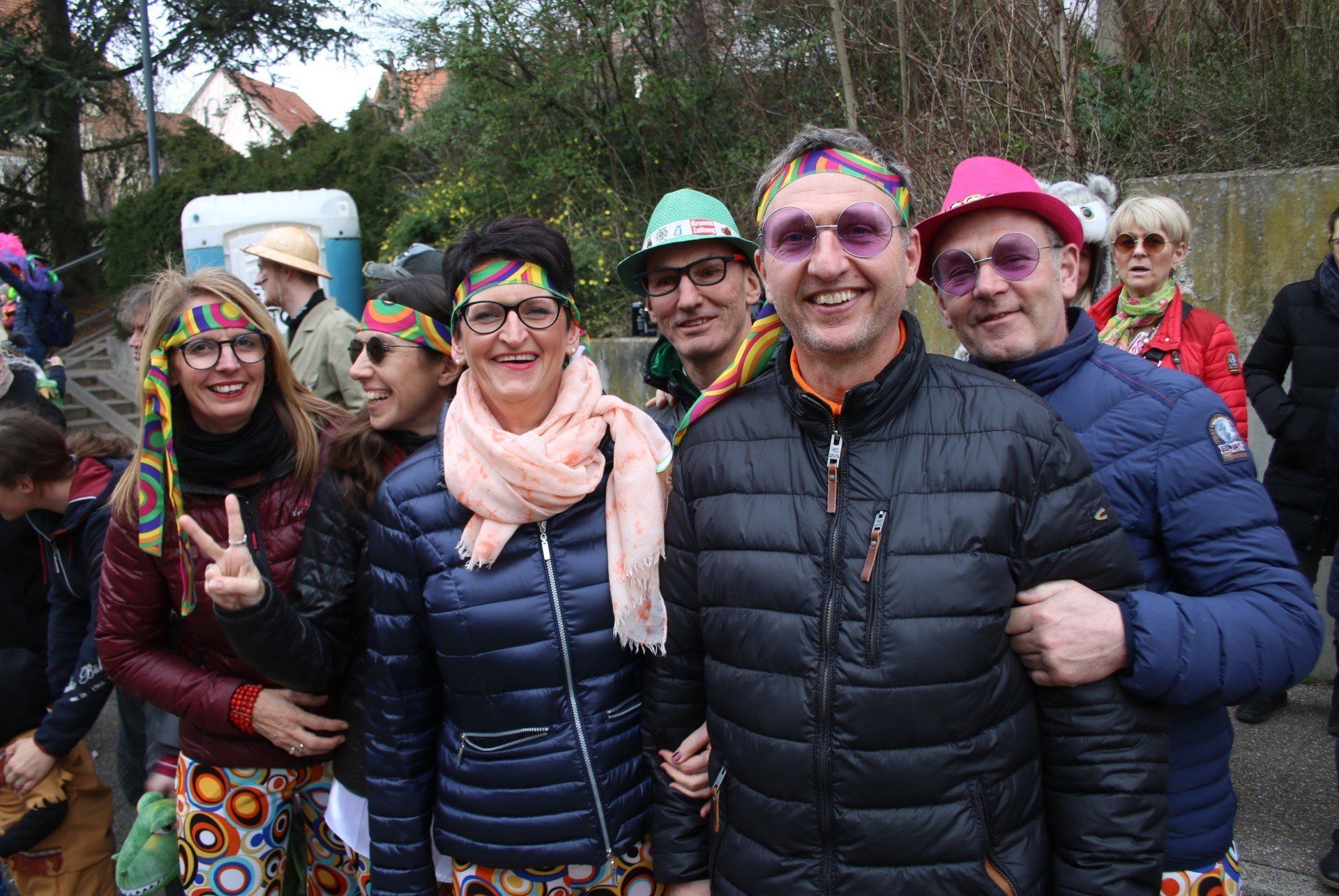 Mittendrin: Kinderprinzenpaar Anneke I. Roser und Phil I. Preiß im silbernen Weltraum-Düsenjet, während sich das Prinzenpaar Alexandra II. Di Sannio und Roman I. Roth im riesengroßen Wanderschuh vor uriger Bergkulisse kutschieren ließ und ebenso jede Menge Gutsele und Geschenke regnen ließ. Ob FCG-Fußballer als Bier(hoff)-Flaschen verkleidet, Gartenzwerge, Narren im Farbeimer und der Mönchkutte, Pfinztrolle, Keltereck-Esel, Singener Bären und natürlich schaurig-fröhliche Hexen, die vor so mancher Haustür kehrten: Der Spaßfaktor bei der ganzen Familie war garantiert in den vollgefüllten Straßen.